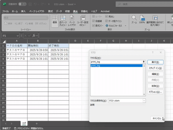 scriptNameLog = "テストのマクロ" ' 必要に応じて変更