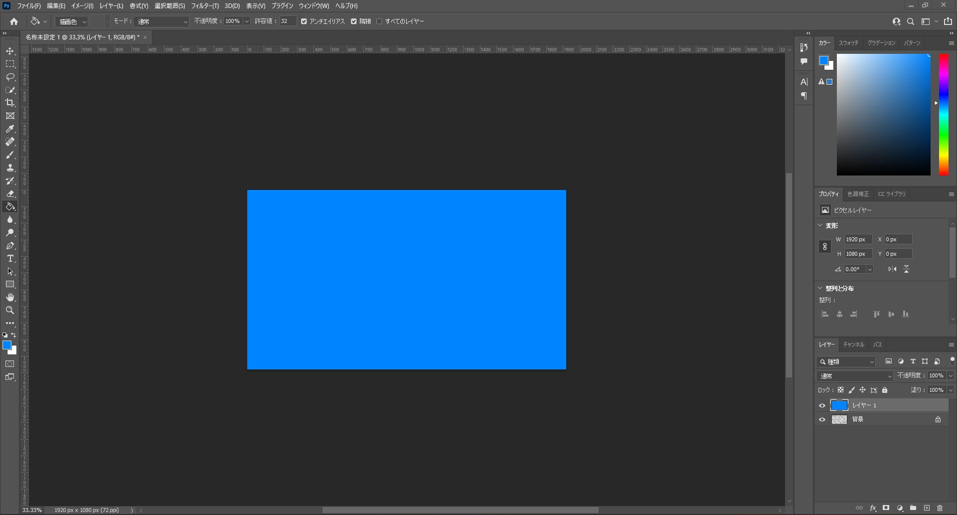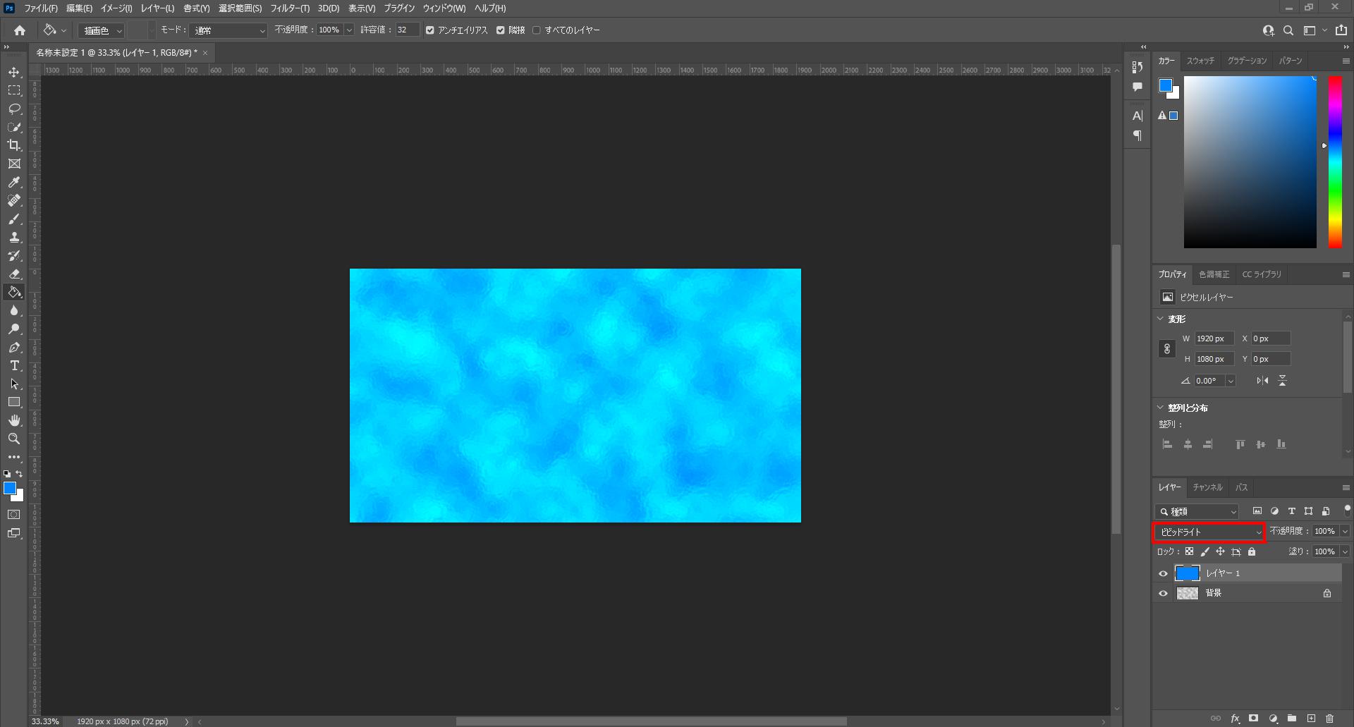 (5)先ほどのレイヤーの上にレイヤーを追加して、水色で塗りつぶします。