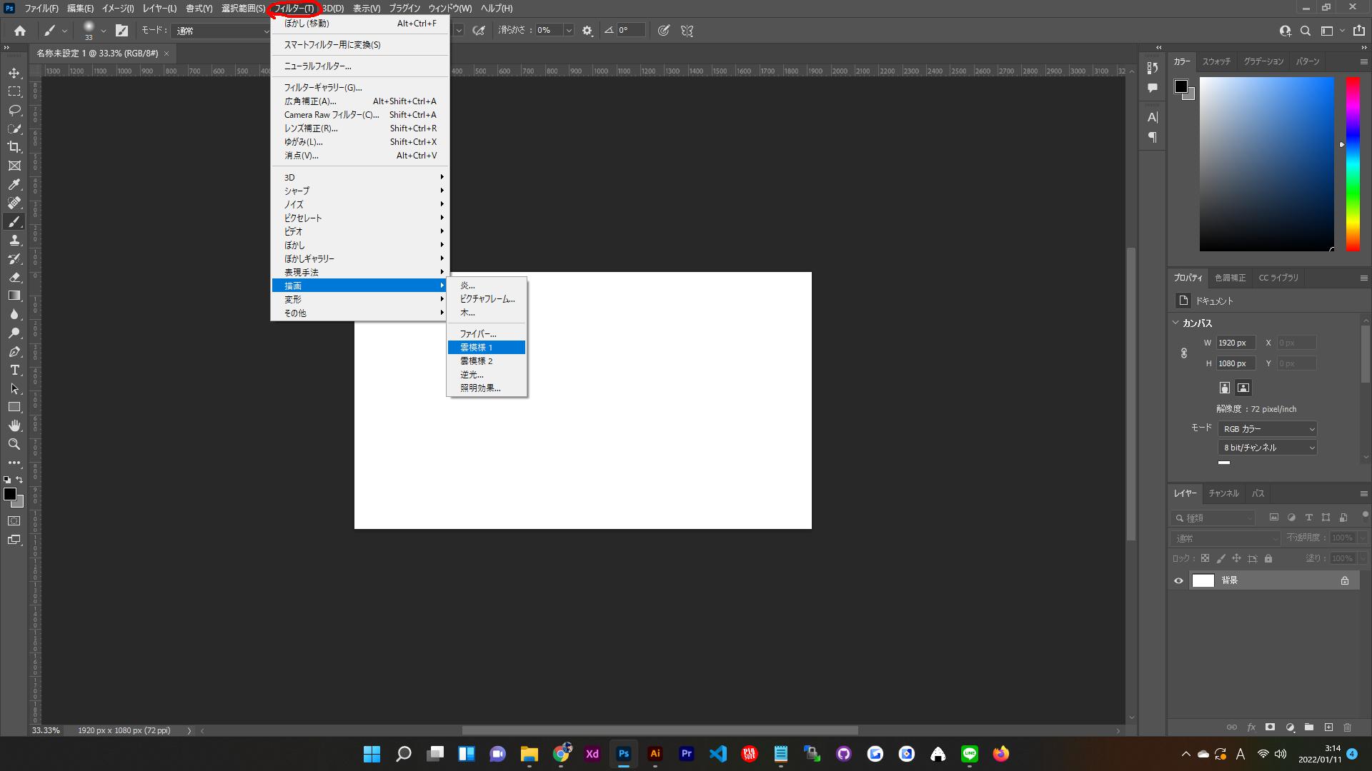 (1)上部のメニューの フィルター > 描画 > 雲模様1 をクリックして適用します。