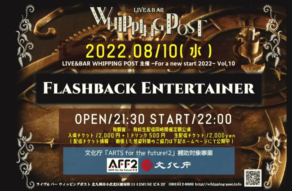 北九州 LIVE&BAR WHIPPING POSTにて有料配信ライブ