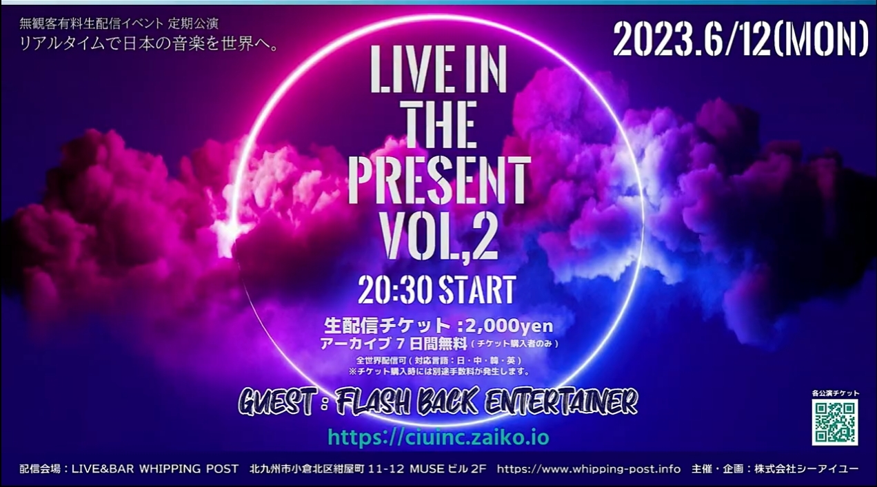 北九州 LIVE&BAR WHIPPING POSTにて有料配信ライブ