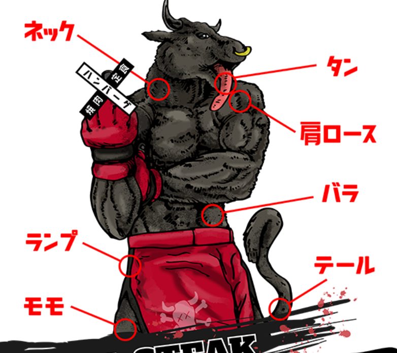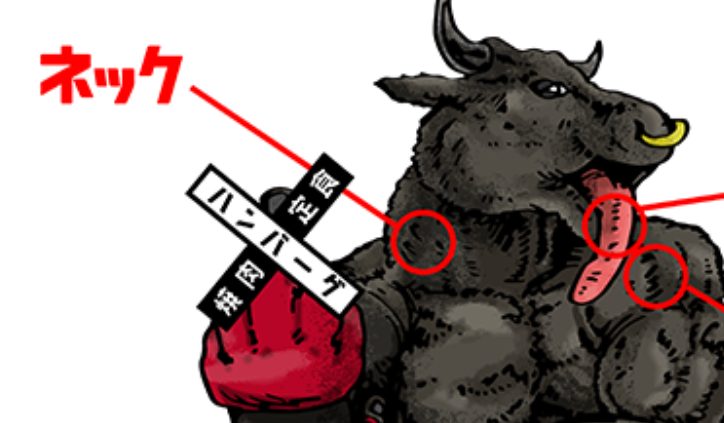 弱点をピックアップするようなイメージで、美味しそうな部位の名称を書いてみました。