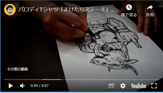 イラストのテイストはカッコいいに入りますが、ジャンルとしては『パロディ・おもしろ』なのでおもしろ感のある肉料理名の「ハンバーグ」」「焼肉定食」を選んでみました。